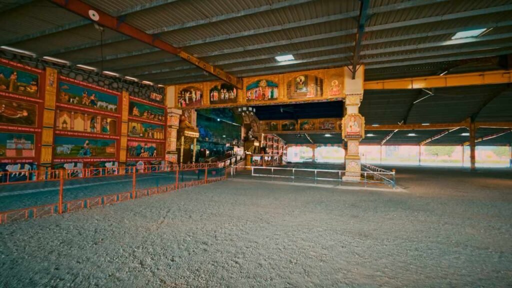 The Cowshed (Gaushala): We visited a massive hall dedicated to Gau Seva (service to cows), a central tenet of rural Indian spirituality. We estimated it could feed at least 100 cows at once. While most of the herd was out grazing in the forest during our visit, witnessing the staff diligently preparing the evening fodder was heartwarming. It highlighted the ashram’s commitment to selfless service (Seva) and compassion for all living beings. It serves as a reminder that spirituality is not just about prayer, but about caring for the voiceless.